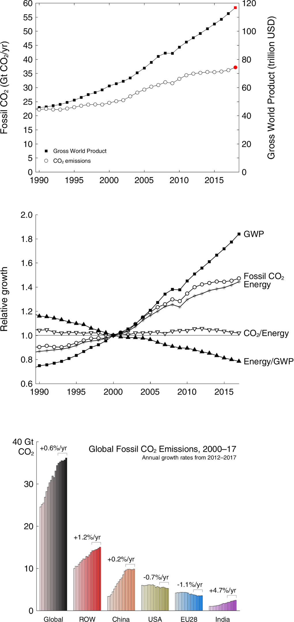 2018.gads ir otrais gads pēc kārtas, kad atkal ir vērojams CO2 emisiju pieaugums. 2017.gadā emisijas palielinājās par 1,6%. Prognozētais 2018.gada pieaugums ir 2,8% (+1,8 līdz +3,7%). Kopējais emitētā CO2 apjoms 2018.gadā varētu sasniegt 37,1 miljardus tonnu. Šī ir nepatīkama tendence pēc salīdzinoši optimistiskā perioda no 2014. līdz 2016.gadam, kad emisiju apjoms praktiski nepieauga.